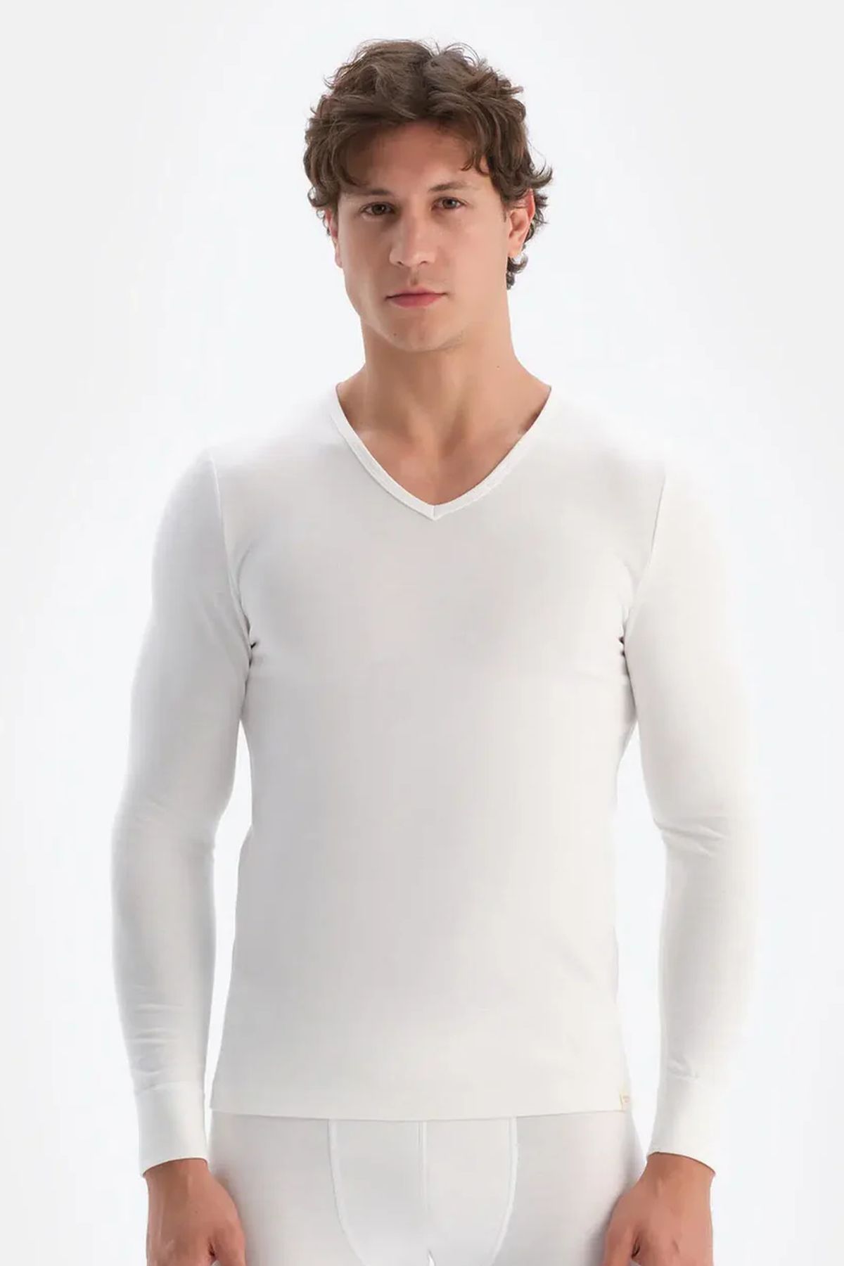 Dagi 6035 Erkek Uzun Kollu V Yaka Termal Üst İçlik-EkruBirinci sınıf kumaştan üretilen ürünümüzün bedeni standarttır. Çekme veya solma yapmaz. Orijinal paketi ile gönderim yapılmaktadır. Yumuşak ve hava alan yapısı ile konforlu ve rahat bir kullanım sağlar. Orjinal paketi ile gönderim yapılmaktadır. Çekme veya Solma yapmaz. Yıkama talimatına uygun yıkayınız. Çamaşır makinesinde 30°C sıcaklıkta hassas yıkamada ters çevirerek yıkayın. Benzer renklerle yıkayın. Çamaşır suyu kullanmayın. Yüksek esneme yeteneğine sahip özelliği sayesinde formunu kaybetmez.Ürün İçeriği: %47 Polyester, %47 Viskon, %6 Elastan