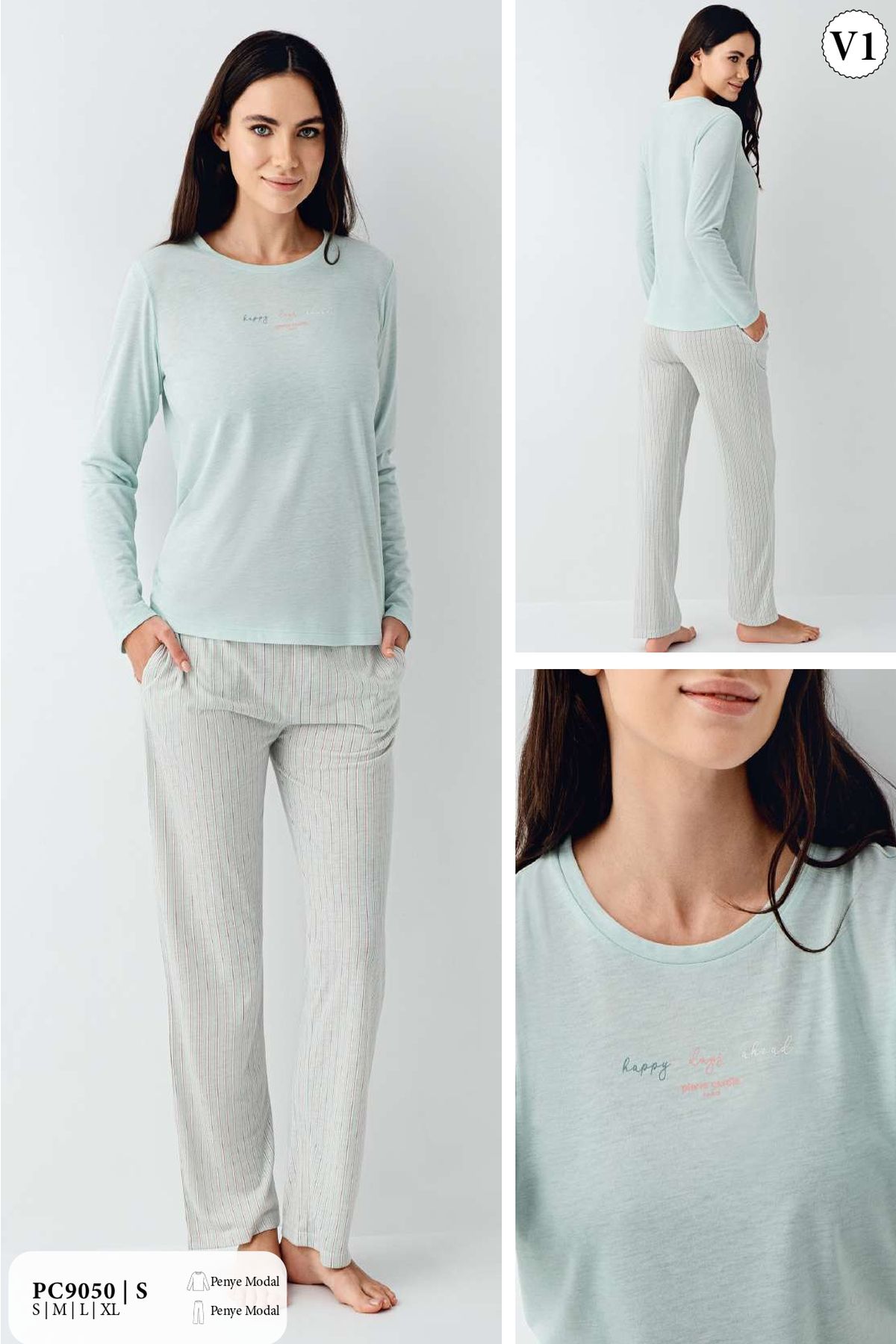 Pierre Cardin 9050 Kadın Uzun Kollu Bisiklet Yaka Pijama Takımı-NilBirinci sınıf penye modal kumaştan dikilen takımımızın beli lastiklidir. Günlük kullanıma uygun rahat, zarif ve şık bir modeldir. Yumuşak ve hava alan yapısı ile konforlu ve rahat bir kullanım sağlar. Orjinal paketi ile gönderim yapılmaktadır. Çekme veya Solma yapmaz. Yıkama talimatına uygun yıkayınız. Çamaşır makinesinde 30°C sıcaklıkta hassas yıkamada ters çevirerek yıkayın. Benzer renklerle yıkayın. Çamaşır suyu kullanmayın. Yüksek esneme yeteneğine sahip özelliği sayesinde formunu kaybetmez.Ürün İçeriği: %50 modal %50 pamuk