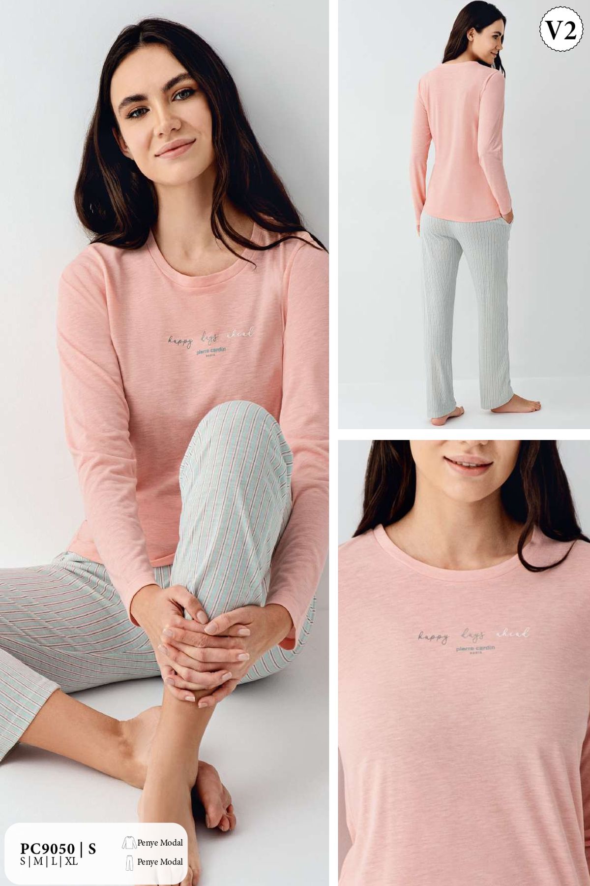 Pierre Cardin 9050 Kadın Uzun Kollu Bisiklet Yaka Pijama Takımı-SomonBirinci sınıf penye modal kumaştan dikilen takımımızın beli lastiklidir. Günlük kullanıma uygun rahat, zarif ve şık bir modeldir. Yumuşak ve hava alan yapısı ile konforlu ve rahat bir kullanım sağlar. Orjinal paketi ile gönderim yapılmaktadır. Çekme veya Solma yapmaz. Yıkama talimatına uygun yıkayınız. Çamaşır makinesinde 30°C sıcaklıkta hassas yıkamada ters çevirerek yıkayın. Benzer renklerle yıkayın. Çamaşır suyu kullanmayın. Yüksek esneme yeteneğine sahip özelliği sayesinde formunu kaybetmez.Ürün İçeriği: %50 modal %50 pamuk